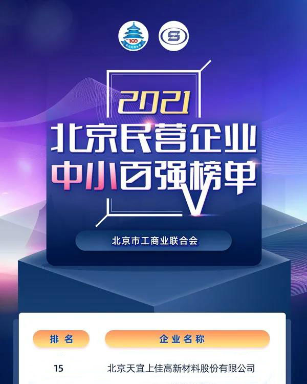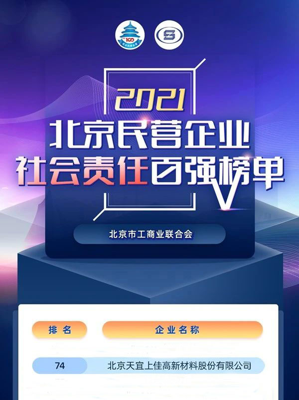 近日,北京市工商聯(lián)發(fā)布了2021北京民營企業(yè)百強“1+4”榜單,此榜單以高質(zhì)量發(fā)展、社會形象、企業(yè)規(guī)模、產(chǎn)業(yè)發(fā)展為基本條件,將經(jīng)營情況、行業(yè)專注、硬科技能力、技術水平、研發(fā)投入、國際認證、企業(yè)資質(zhì)作為核心指標,進行綜合評選而產(chǎn)生。北京天宜上佳高新材料股份有限公司(以下簡稱“天宜上佳”)榮登“北京民營企業(yè)中小百強”和“北京民營企業(yè)社會責任百強” 雙榜。